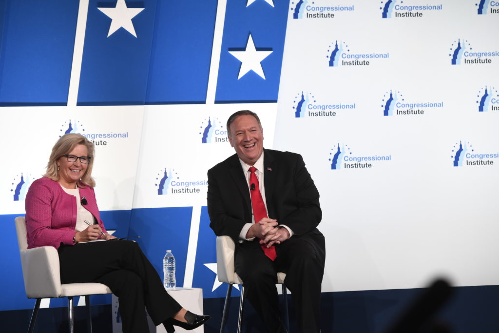 Republican Conference Chair Liz Cheney and U.S. Secretary of State Mike Pompeo discuss global events at the 2019 U.S. House Republican Member Conference.