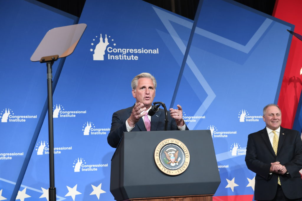 Republican Leader Kevin McCarthy addresses the 2019 U.S. House Republican Member Conference.