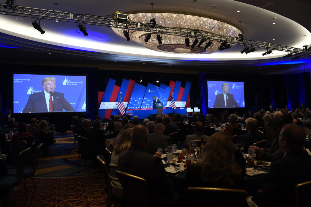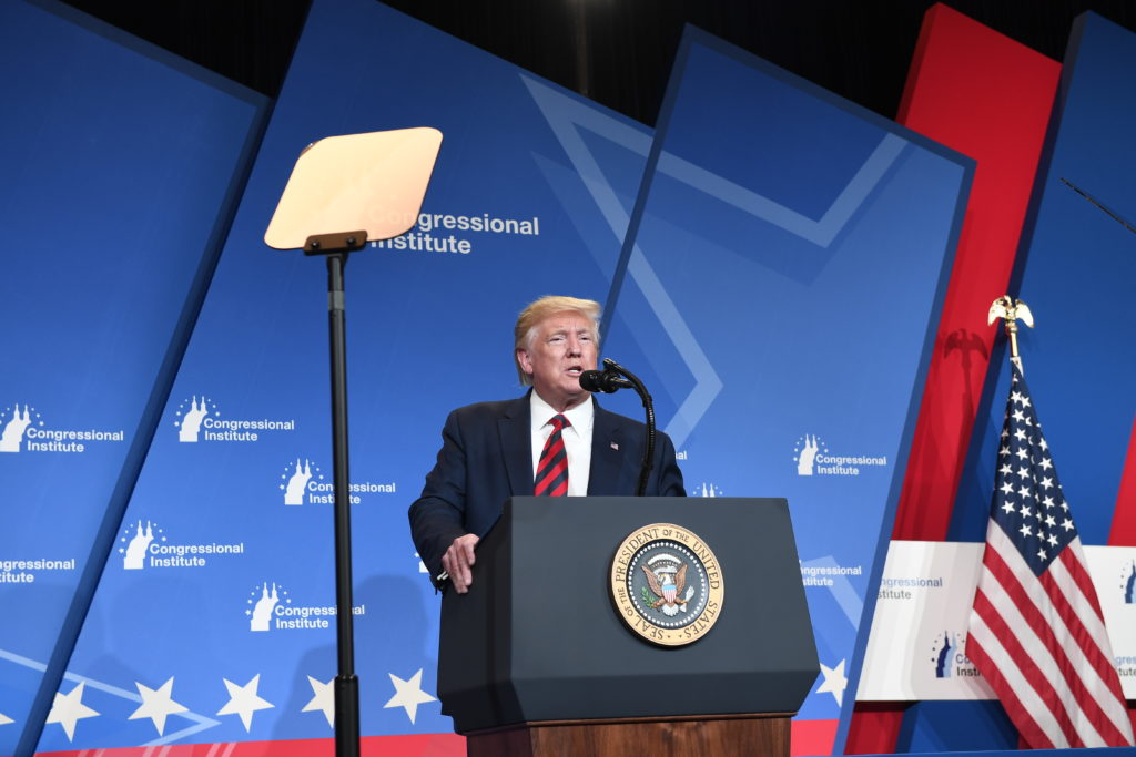 President Donald Trump delivers keynote remarks during the 2019 U.S. House Republican Member Conference.
